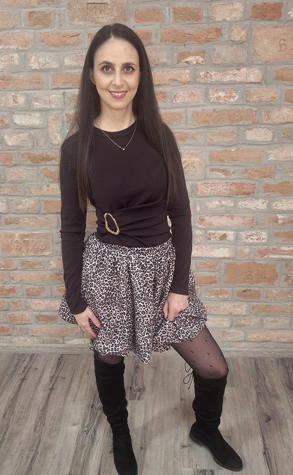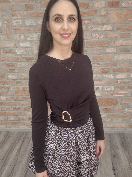 Csoki barna , oldalt dísz csatos , bordázott , rugalmas anyagú felső!