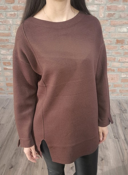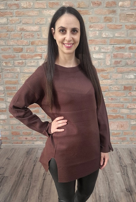 Vastagabb anyagú , laza fazonú , csoki barna oldalt dísz varrásos felső !