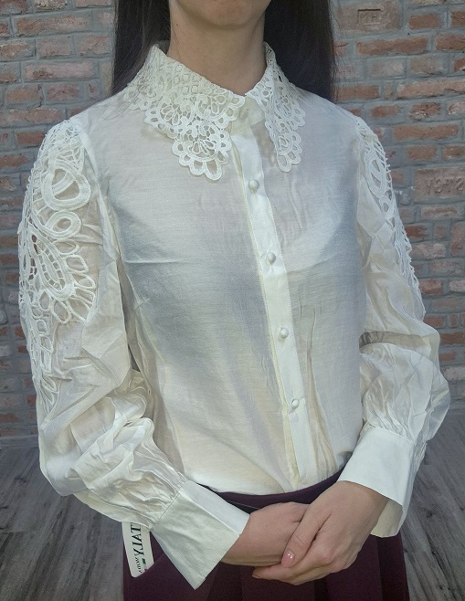 Elegáns fehér gombos , laza esésű csipkés , galléros fehér ing !