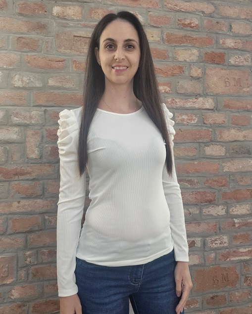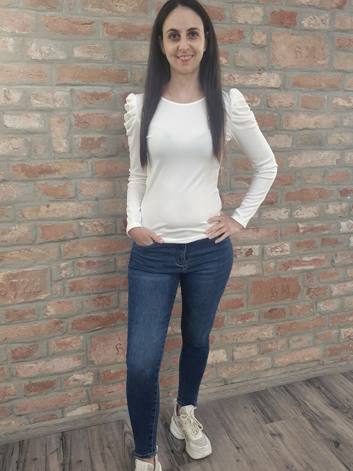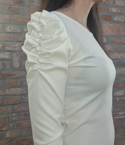 Bordázott anyagú , ráncolt ujjú fehér felső !