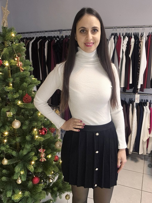 Fekete , finom kötött , vastagabb , rakott szoknya , fehér gyöngy díszgombokkal!