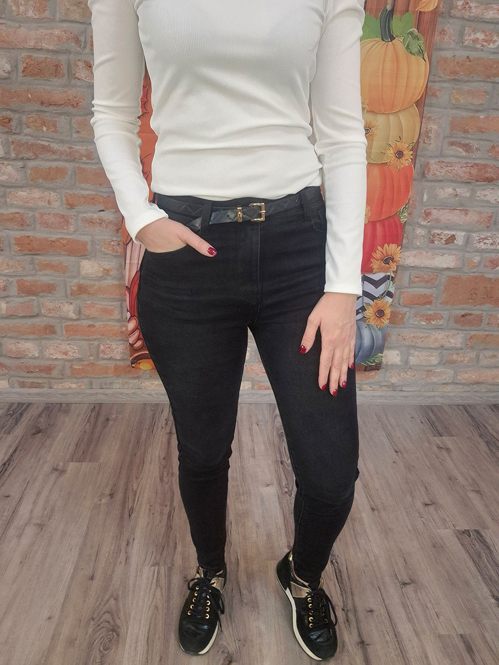 MIMI Bélelt fekete farmernadrág