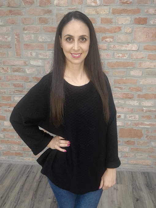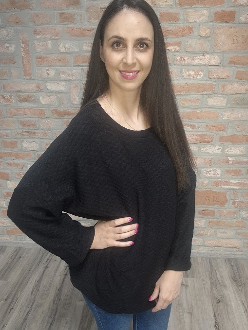 Fekete , önmagában mintás, pihe- puha laza felső!